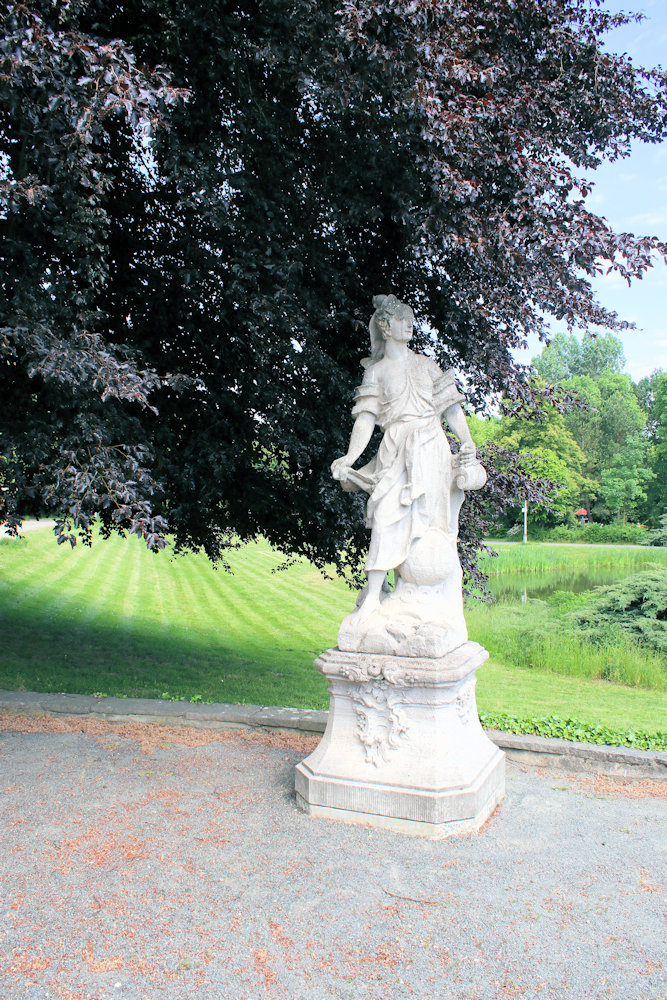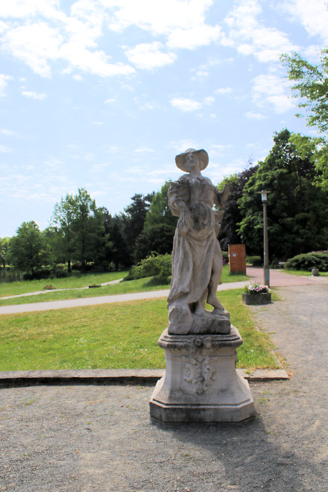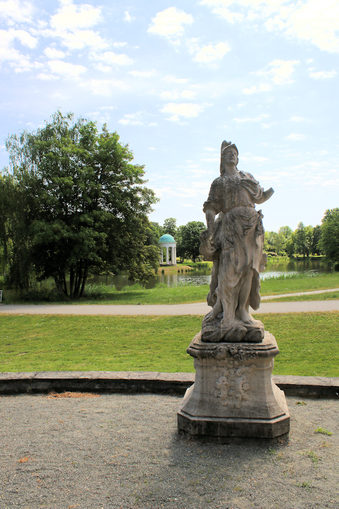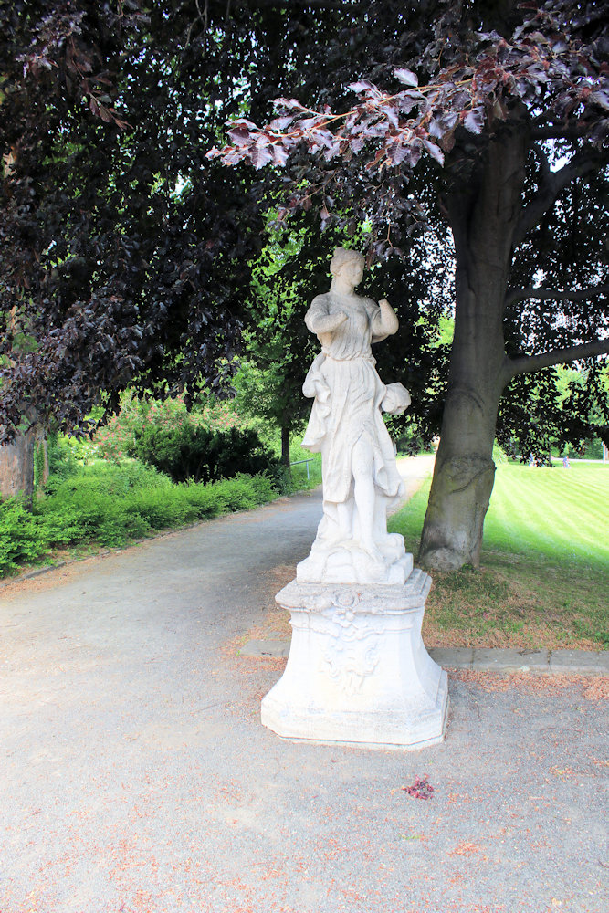 - auf der Terrasse des Weißen Haues in Markkleeberg stehende Figuren auf Sockel (Euterpe, Urania, Polyhymnia, Terpsichore, Melopomene, Thalia)