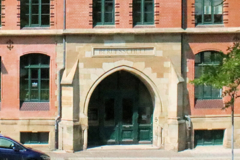 Das Portal der ehem. Berufsschule befindet sich an der heutigen Volkshochschule Burgenlandkreis zwischen dem Schloss Moritzburg und der Michaeliskirche in Zeitz.
