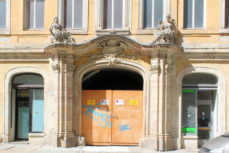 - Das Portal Katharinenstraße 19 in Leipzig ist in einem schadhaften Zustand.