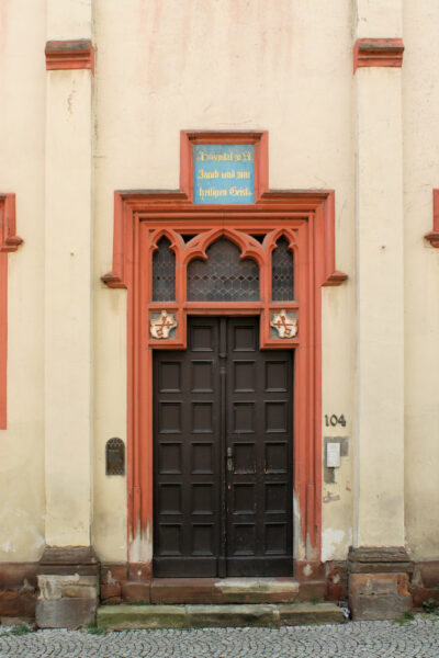 Das Portal Michaelisstraße 104 befindet sich zwischen der Hospitalkirche und der Peterskirche in Naumburg.