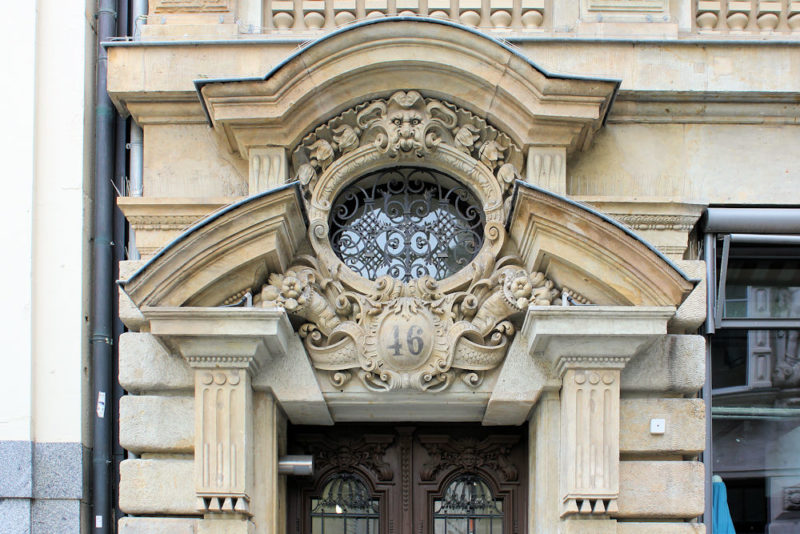 - Das Portal des Wohn- und Geschäftshauses Petersstraße 46 in Leipzig ist saniert.