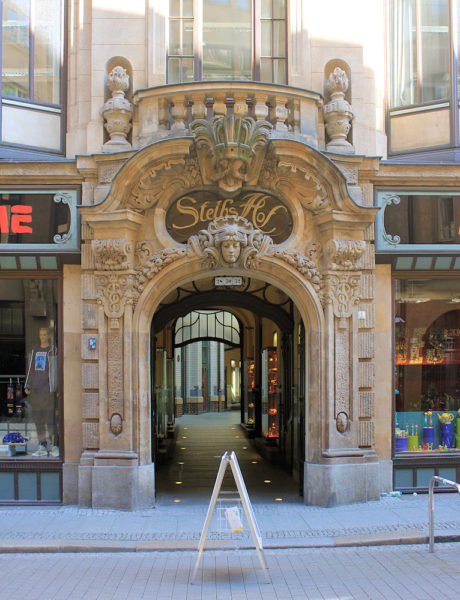 Das Portal von Steibs Hof befindet sich in der Nikolaistraße zwischen Nikolaikirche und Hauptbahnhof.