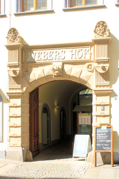 Das Portal von Webers Hof befindet sich in der Hainstraße nahe dem Markt in Leipzig.