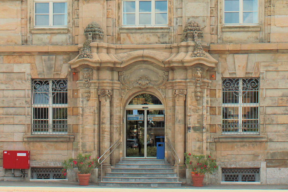 - Die Portale am ehem. Bahnpostamt in Leipzig sind saniert.