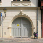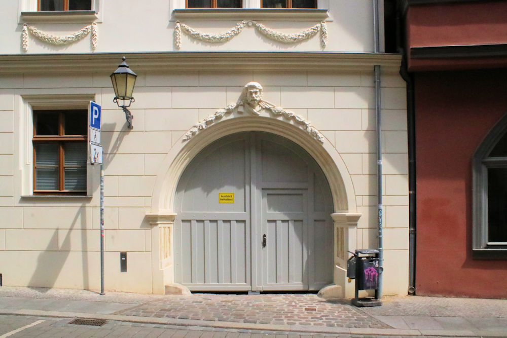 - an der Hofdurchfahrt ursprünglich wohl Renaissance-Rundbogenportal, barock umgestaltet, Portal zum Hauszugang mit Ohrenfaschenrahmung und Stuckdekor