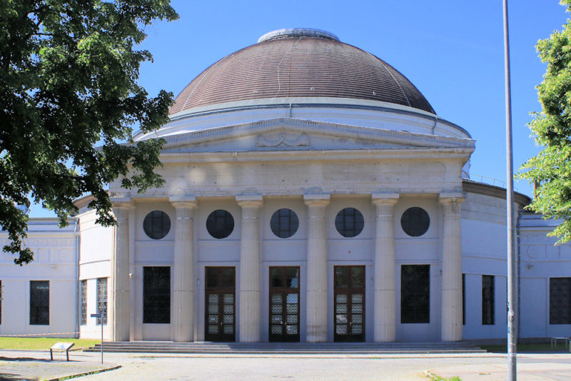 - Der Portikus der Messehalle 16 auf dem Alten Messegelände in Leipzig kann besichtigt werden.
