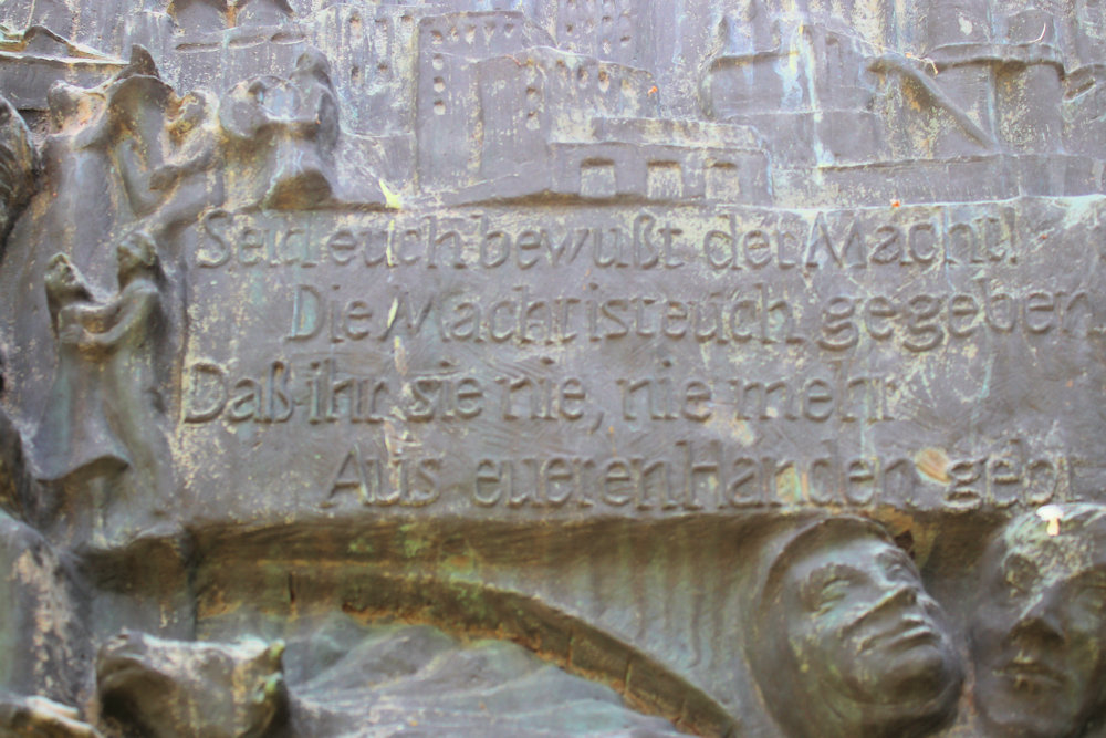 Seid euch bewußt der Macht ! / Die Macht ist euch gegeben / Daß ihr sie nie, nie mehr / Aus euren Händen gebt.