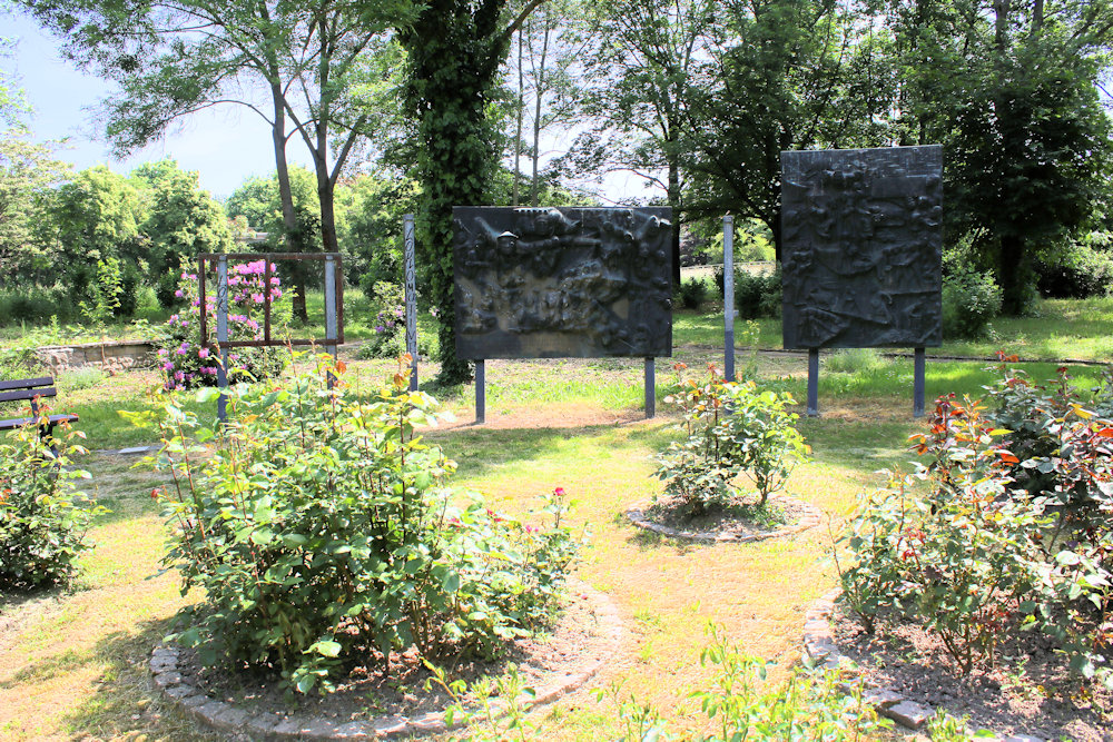 Die Reliefs „Der Weg der Bauern“ stehen im AGRA-Park Markkleeberg an der Südspitze des Großen Parkteichs.