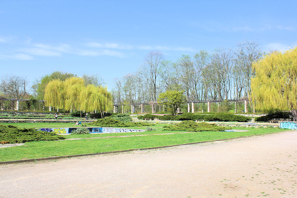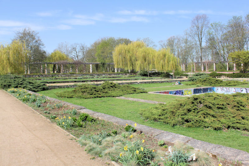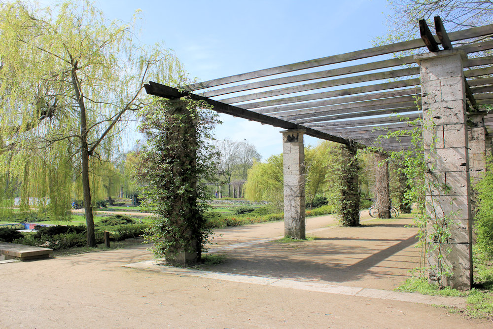 Der Richard-Wagner-Hain wurde beidseitig des Elsterflutkanals angelegt am Rand des historischen Palmengartens.
