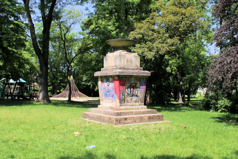 - Das Grabmal auf dem ehem. Oberen Johannisfriedhof in Zeitz ist in einem schadhaften Zustand.