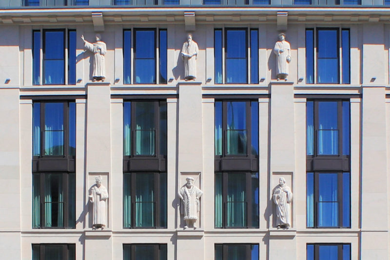 Sechs Plastiken am Haus Burgplatz 5 (Petersbogen) Leipzig, Stadt Leipzig,