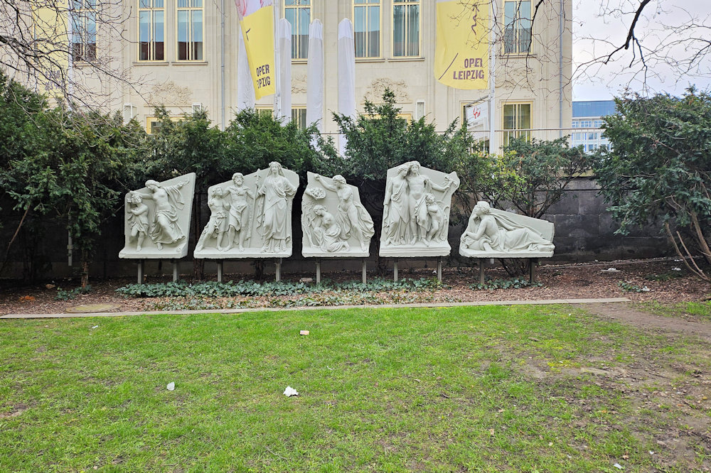 Der Tympanon-Fries des Neuen Theaters in Leipzig befindet sich an der Westseite der Oper Leipzig an der Goethestraße.
