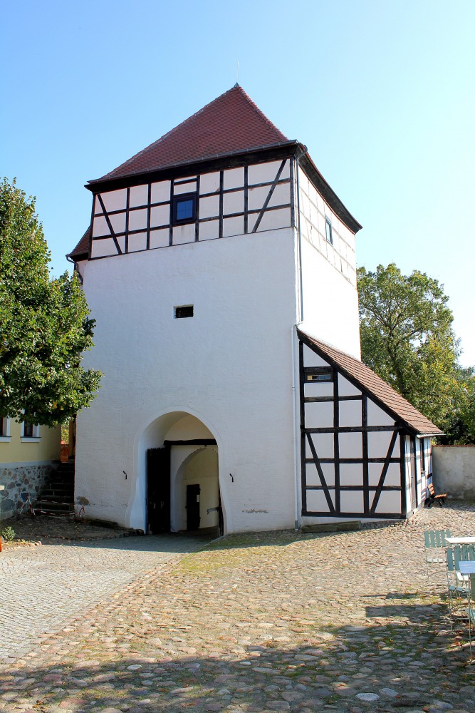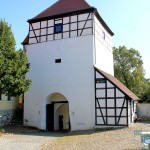 - Torturm mit Fachwerkaufsatz, Wächterhaus Fachwerk, Amtshaus Putzbau;