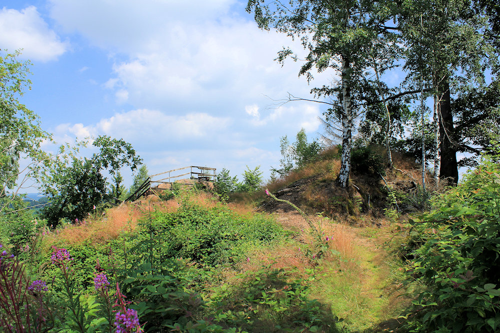 - Gebäude der Burg Lichtenberg sind nicht erhalten, Mauerstrukturen im Erdboden sind erkennbar.
