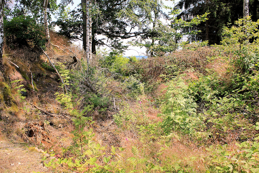 - kleine Höhenburg auf einem Bergsporn, umgeben von einem doppelten Wall-Graben-System