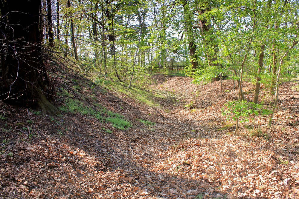 - Der Burghügel und die Wall-Graben-Anlage der slawischen Wallburg sind noch gut erkennbar.