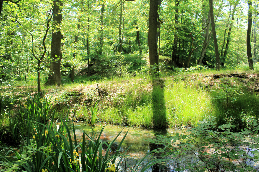 - Der Burghügel und die Wassergräben des Pakerschlosses bei Falkenberg sind noch sehr gut erhalten.