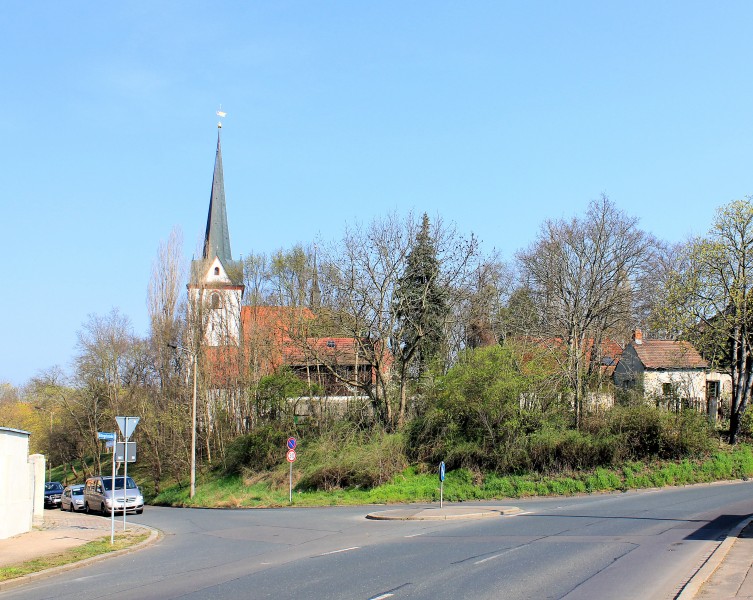 - vermutlich bereits in slawischer Zeit angelegt, 1104 Ersterwähnung eines befestigten Hofes, vermutlich im 12. Jahrhundert Bau der Kirche, Burg etwa ovale Anlage als Turmhügelburg, im Westen und Süden durch die Weiße Elster geschützt, nach Osten und Norden durch Gräben (nicht mehr vorhanden), vermutlich Teilung in Vorburg und Kernburg, im Bereich der Vorburg steht das Rittergut,