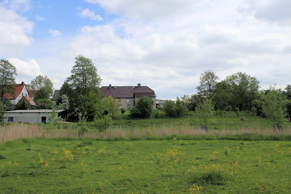 - Von der 80 x 60 m großen Wasserburg Borna sind noch Reste der Wallanlagen erkennbar.