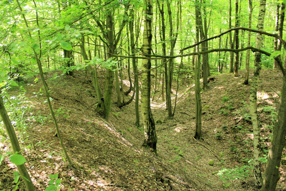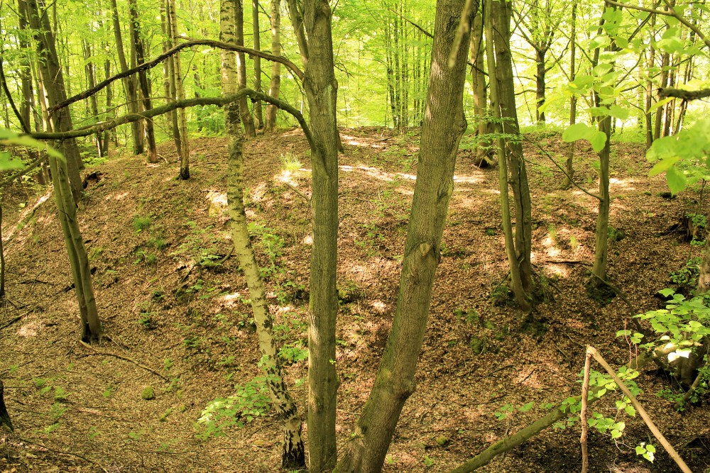 - Der Burghügel und das doppelte Wall-Graben-System der Turmhügelburg sind sehr gut erhalten.
