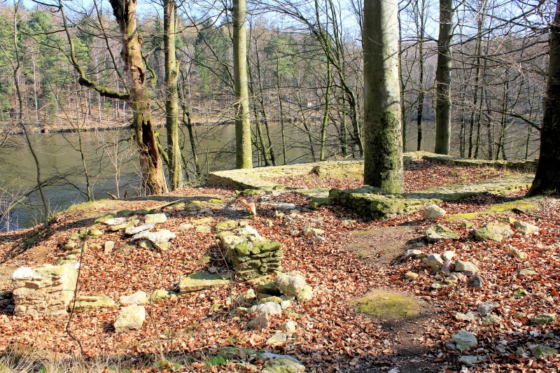 - kleine Wall-Graben-Anlage mit vorgelagertem Wirtschaftshof, auf dem Burghügel Grundriss eines Wohnturms sowie eines Eckgebäudes und eines Maueransatzes ergraben
