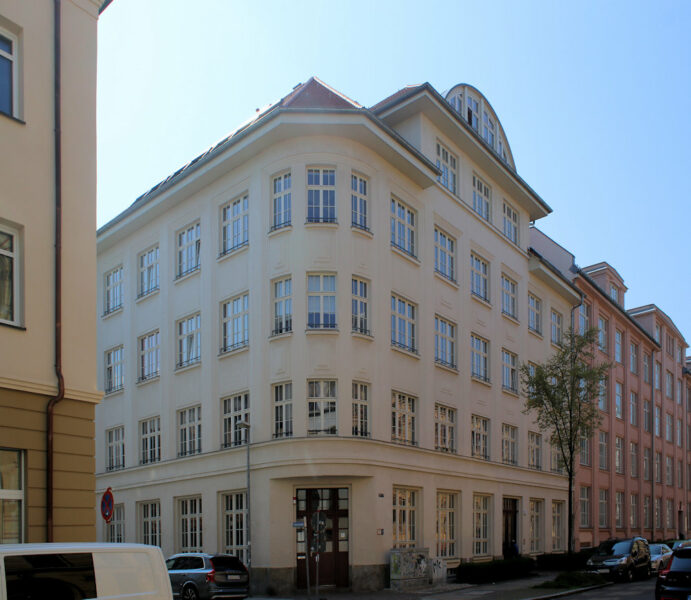 Die ehem. Buchdruckerei „Gutenberg“ Albert Paul in Leipzig steht im Graphischen Viertel zwischen der Handwerkskammer zu Leipzig und dem Reclam-Karree in geschlossener Blockrandbebauung.