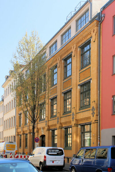 Die ehem. Grafische Kunstanstalt Louis Glaser in Leipzig steht im Graphischen Viertel nahe dem Reclam-Karree in geschlossener Blockrandbebauung.