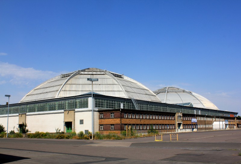 - eingeschossig, dreischiffige Halle, mit 70,4 Metern Durchmessern größter freitragende Kuppelkonstruktion in der Entstehungszeit