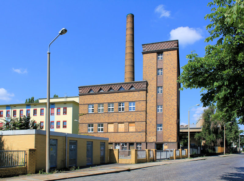 Das ehem. Heizkraftwerk in Reudnitz steht frei am Südrand des Lene-Voigt-Parks.