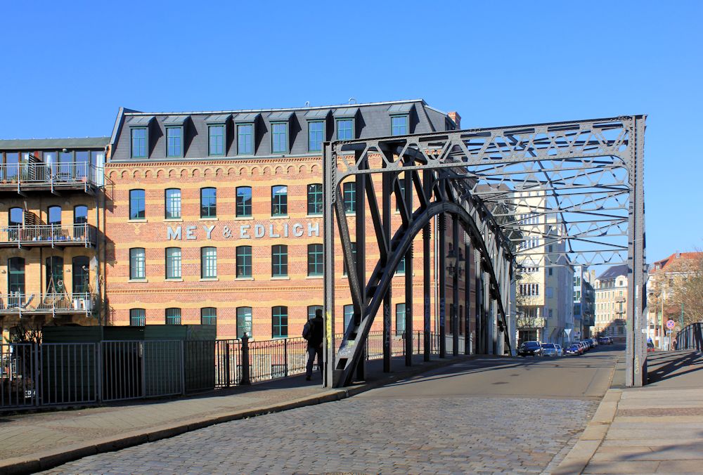 Das Gebäude der Fa. Mey & Edlich Plagwitz steht im östlichen Teil von Plagwitz an der Weißen Elster an der Könneritzbrücke.