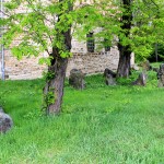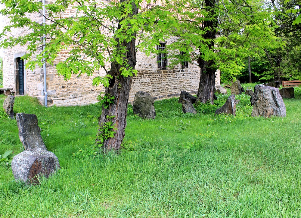 Die Kirche in Treben steht inmitten einer slawischen Doppelwallanlage mit slawischen Grabsteinen auf dem Friedhof.