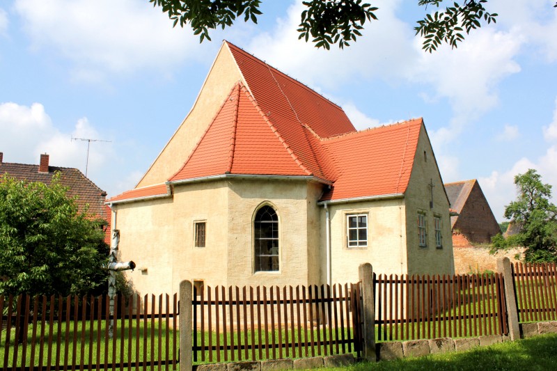 Die Kirche in Dehlitz steht auf dem ehemaligen, heute nicht mehr genutzten Kirchhof.