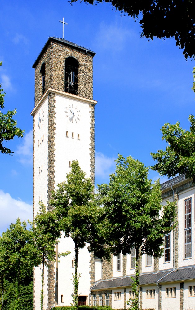 Die Ev. Kreuzkirche steht auf einem gestalteten Platz.