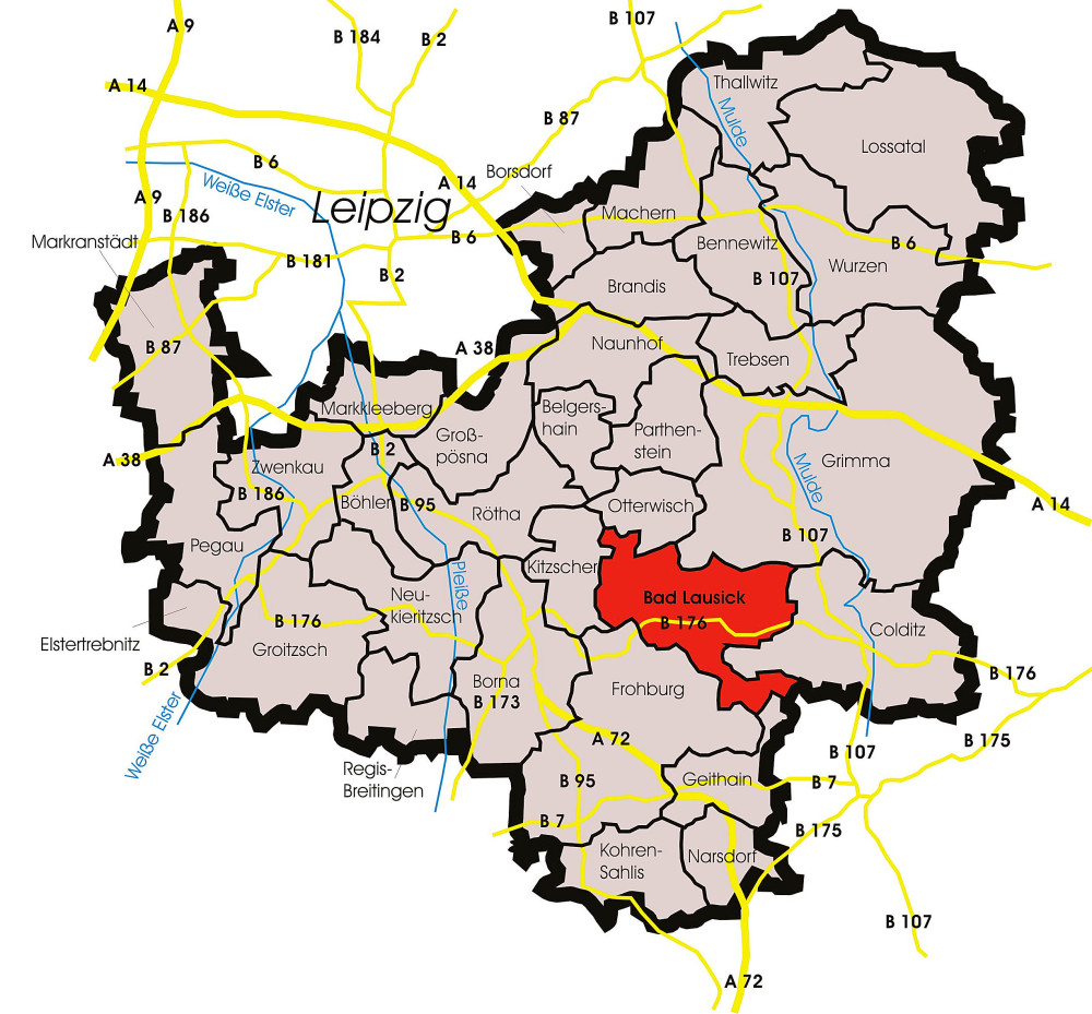 Bad Lausick ist eine Kleinstadt im Südosten des Landkreises Leipzig. Die Stadt Bad Lausick besteht aus den Ortsteilen:- Bad Lausick,