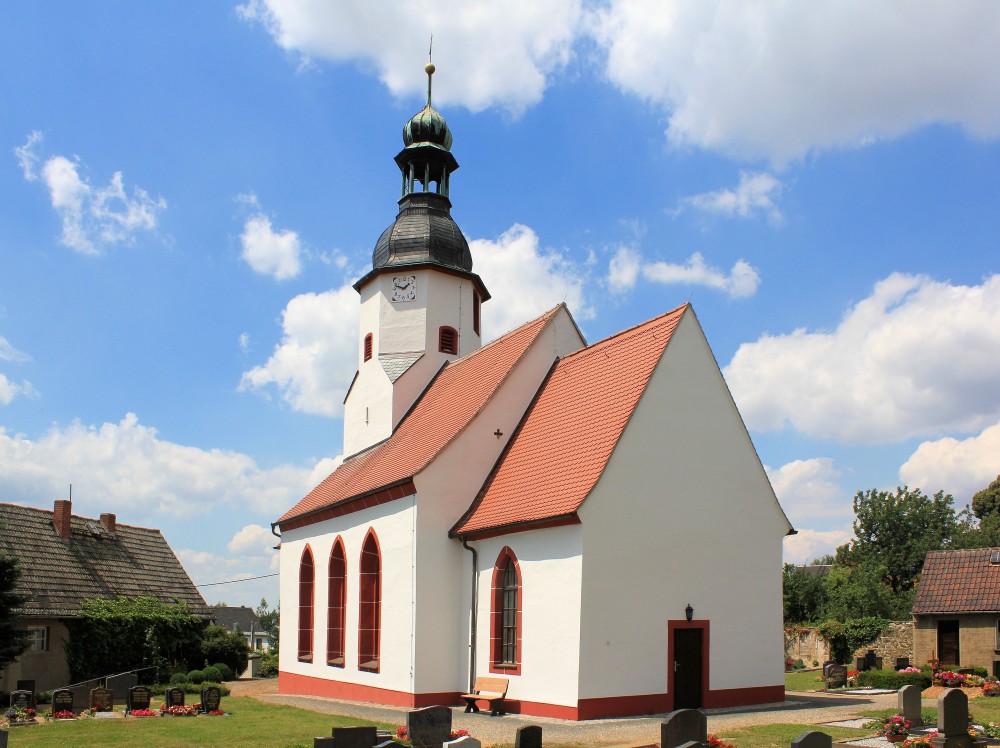 Die romanische Ev. Auferstehungskirche in Stockheim wurde 1909 von Julius Zeißig umgebaut. Der verputzte Bruchsteinbau mit eingezogenem, gerade geschlossenem Chor hat einen Dachreiter mit Schweifhaube.Malerisch mutet die Ev. Pfarrkirche in Thierbaum an. Der romanische Bau wurde 1860 bis 1861 umgebaut und 1909 nochmals erneuert. Der verputzter Bruchsteinbau hat einen, eingezogenen Chor mit 3/8-Schluss und einen turmartigen Dachreiter mit barocker Haube.