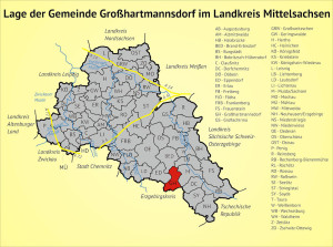 Die Gemeinde Großhartmannsdorf liegt im Erzgebirge. In der Gemeinde Großhartmannsdorf leben ca. 2.500 Menschen (Stand 31.12.2015).