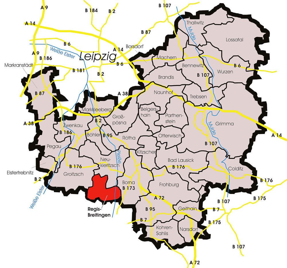 Regis-Breitingen ist eine Kleinstadt im Südwesten des Landkreises Leipzig. Zur Stadt Regis-Breitingen gehören die Ortsteile- Breitingen,