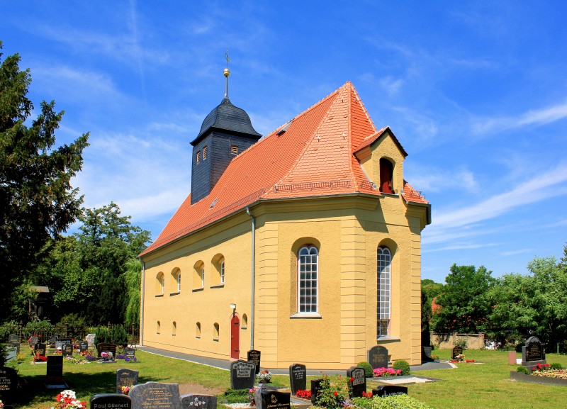 Die Ev. Nikolauskirche in Kitzscher steht auf dem Friedhof.