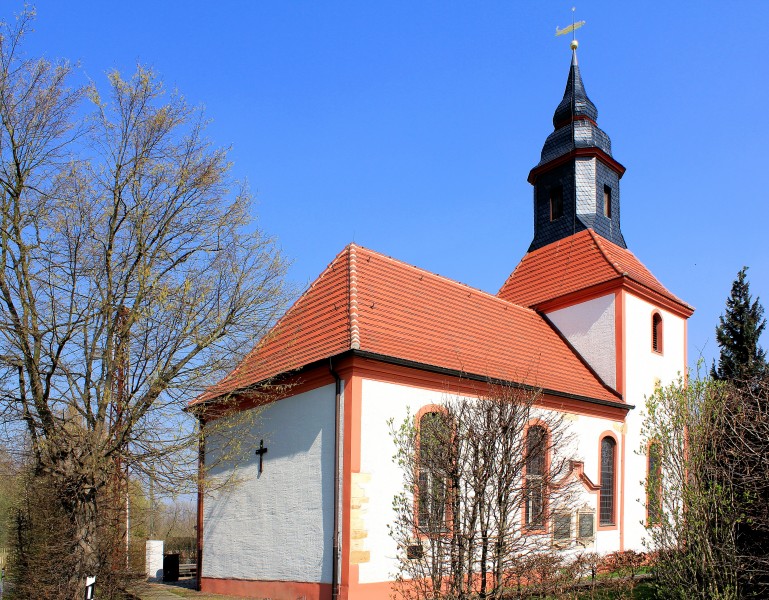 Die Ev. Pfarrkirche in Kleinliebenau steht auf dem ehemaligen, heute nicht mehr genutzten Kirchhof.