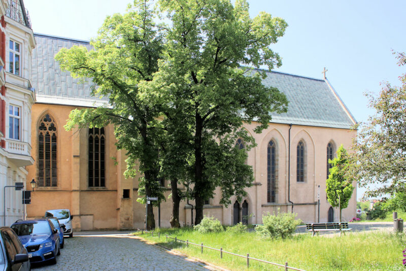 Die ehem. Klosterkirche St. Franziskus, Antonius und Clara steht in der Altstadt von Zeitz unterhalb vom Altmarkt.