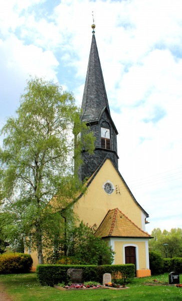 Die Ev. Pfarrkirche in Miltitz steht auf dem Friedhof.