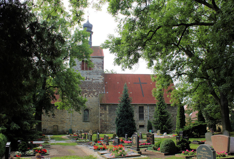 Die Ev. Kirche St. Petri in Obhausen steht auf dem Friedhof.