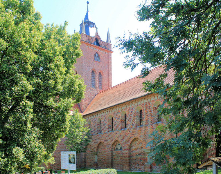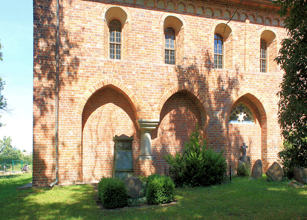 Die Ev. Kirche in Pötnitz steht auf dem Friedhof.