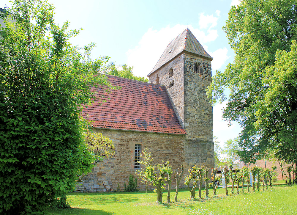 - 1. Hälfte 12. Jahrhundert, Ende 14. Jahrhundert/Anfang 15. Jahrhundert (Verlängerung Schiffswände, Chorschluss, Erhöhung Turm), 18. Jahrhundert (Fenster)