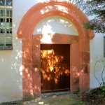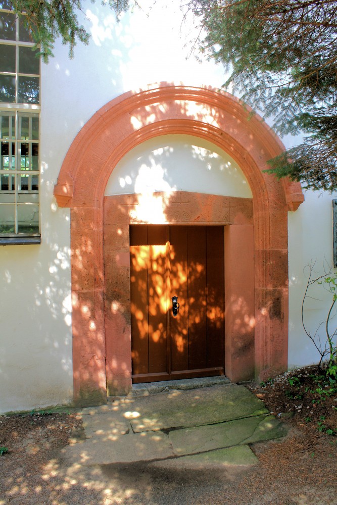 - verputzter Bruchsteinbau, Chorturm mit hohem, verschieferten Abschluss, romanisches Portal
