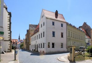 Das Gebäude der Superintendentur in Torgau steht in Blockrandbebauung gegenüber der Stadtkirche.