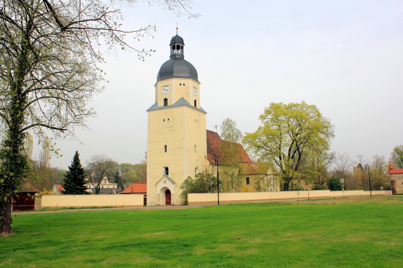 Die Ev. Pfarrkirche in Thallwitz steht auf dem Friedhof.