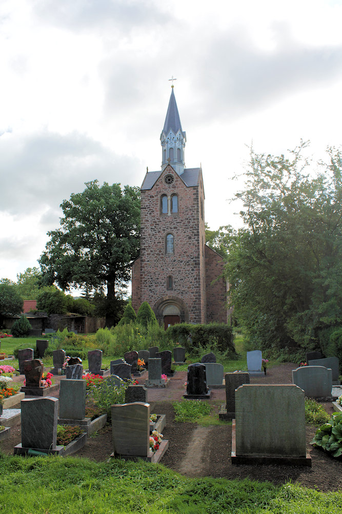 Die Ev. Kirche in steht auf dem ehemaligen, heute nicht mehr genutzten Kirchhof.