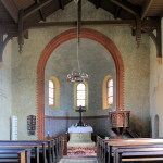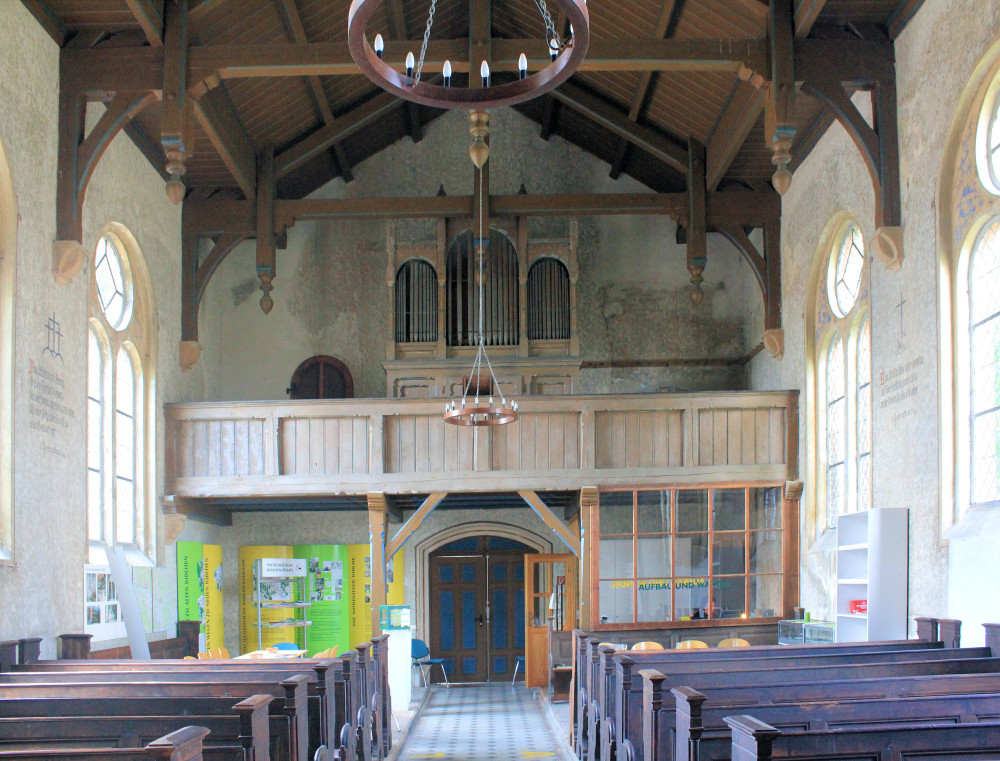 - offener Dachstuhl, Kanzel, Orgelempore, Orgel, Altartisch
