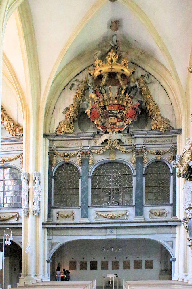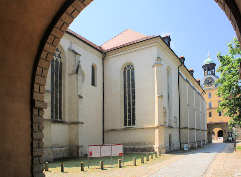 Die Kath. Domkirche in Zeitz steht auf dem Gelände des Schlosses Moritzburg und ist teilweise in den Baukörper des Schlosses eingefügt.